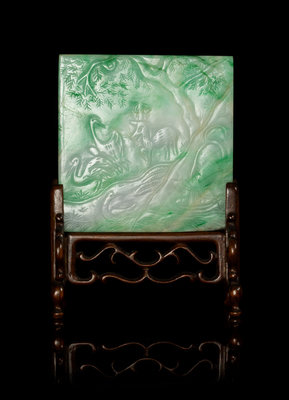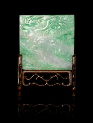 An Apple Green and Celadon Jadeite Plaque