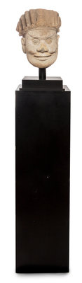 A Large Carved Stone Head of a Daoist Immortal