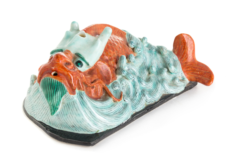 An Iron Red and Green Enameled Porcelain Carp-Dragon Form Water Dropper