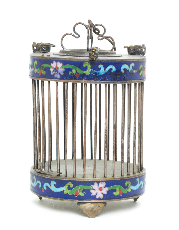 of rounded form, decorated with lotus scrolls on a blue ground.