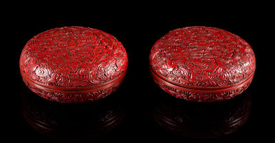 A Pair of Cinnabar Lacquer Covered Boxes