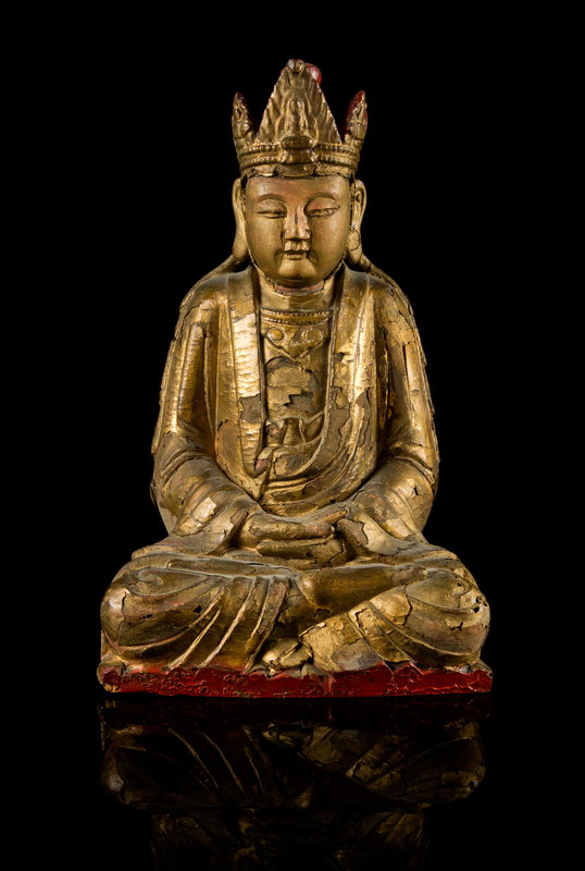 A Gilt Lacquered Wood Figure of Guanyin