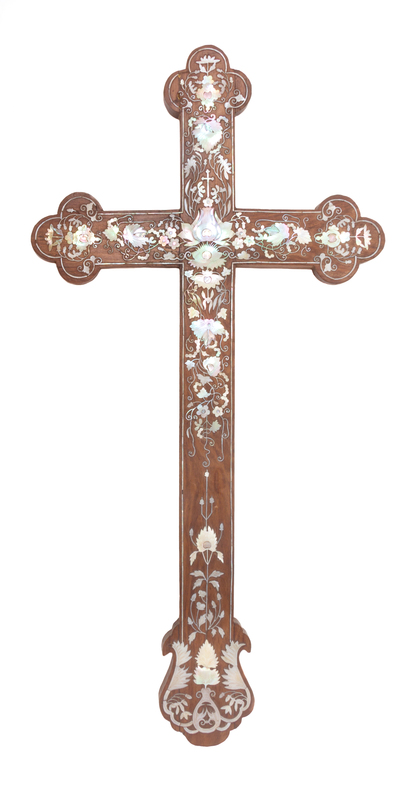 A Mother-of-Pearl Inlaid Wood Cross