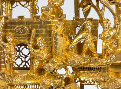 each carved to depict a battle scene.