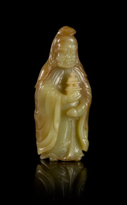 A Carved Yellow Jade Figure of a Guardian