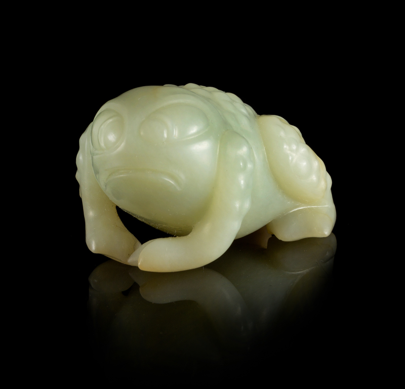 the animal figure depicted in a crouched position, the limbs and torso covered in a bumpy texture.