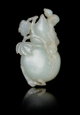 A Carved Pale Celadon Jade Toggle of a Gourd