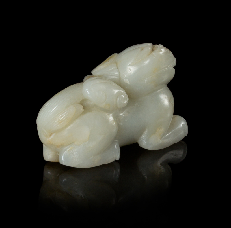 the animal figure depicting recumbent with the head slightly turned to the right, having russet skins.