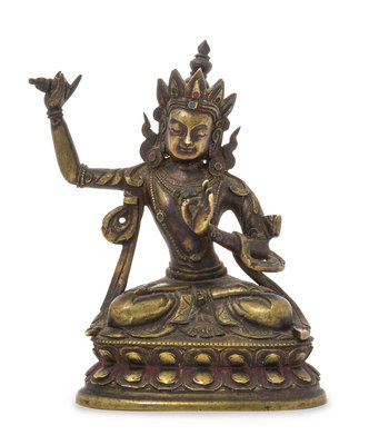 A Sino-Tibetan Gilt Bronze Figure of Manjushri