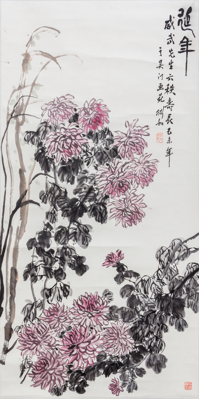 Lady, Calligraphy, Chrysanthemum