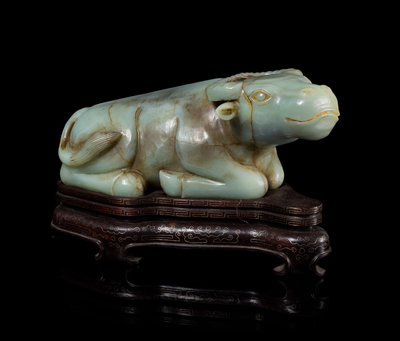 A Celadon Jade Figure of a Water Buffalo