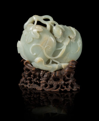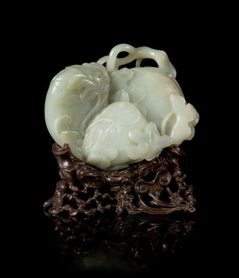A Finely Carved Pale Celadon Jade Melon Group