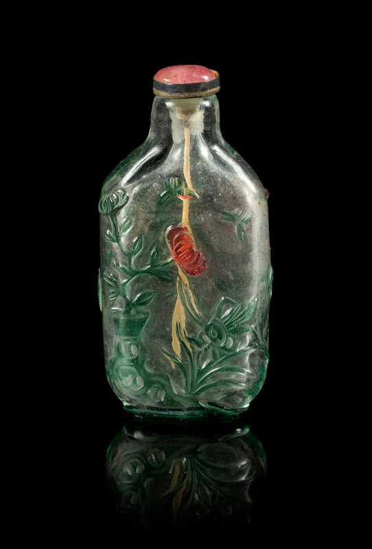 of flattened rectangular form, decorated butterflies above flowering branches.