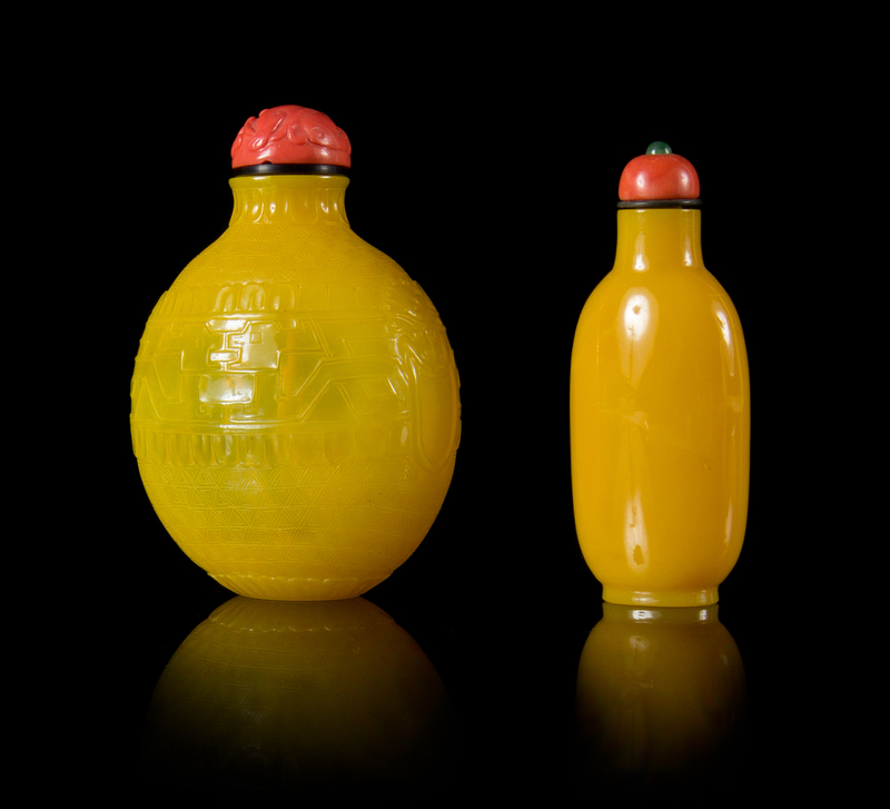 Two Yellow Peking Glass Snuff Bottles