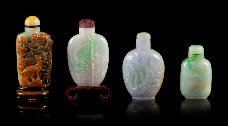 the first of rounded rectangular form, the second of flattened shield form, the third with rounded shoulders and the fourth of rectangular form with carved decoration.