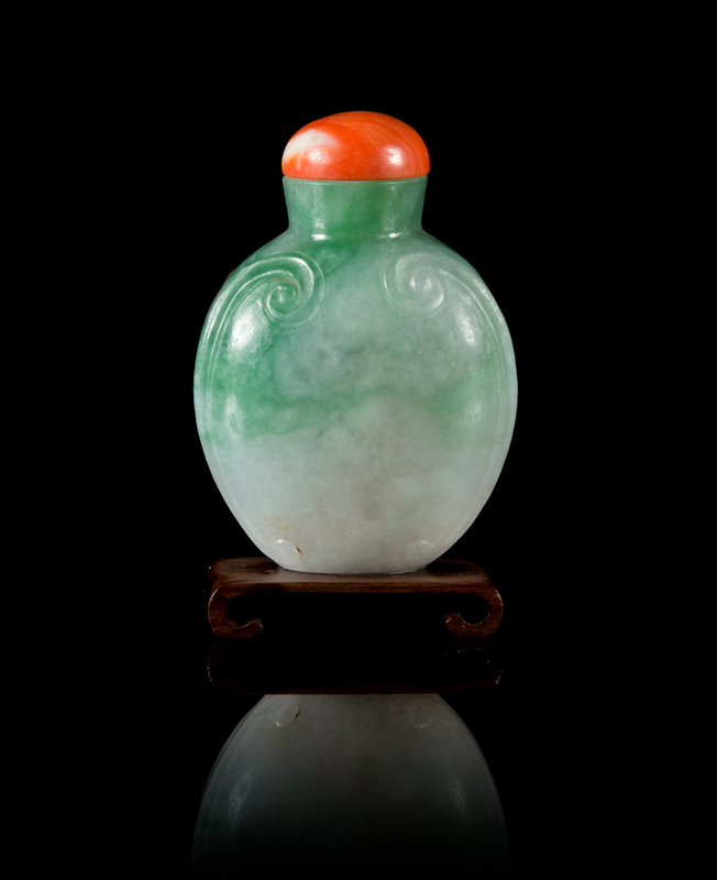 An Apple Green and Celadon Jadeite Snuff Bottle