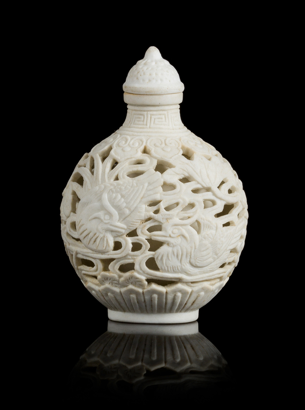 A White Carved Porcelain Snuff Bottle