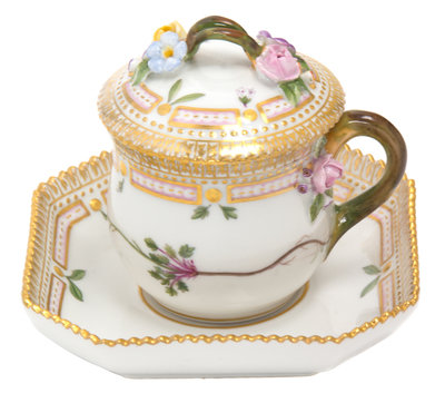 A Royal Copenhagen Flora Danica Porcelain Covered Custard Cup and Saucer