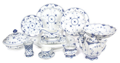 A Royal Copenhagen Porcelain Dinner Service for Twelve with Additional Serving Pieces
