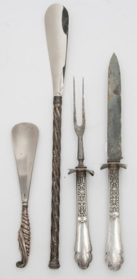 comprising a Gorham carving knife and fork, together with two shoe horns.