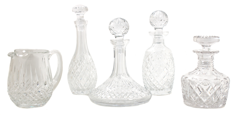 including Stuart and Waterford examples, together with a Waterford glass pitcher.