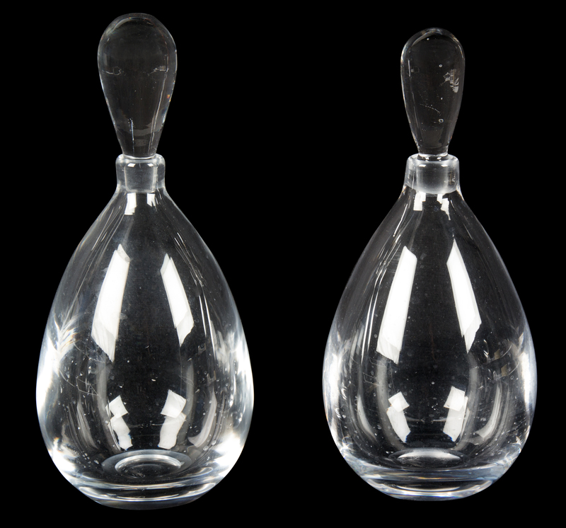 A Pair of Kosta Crystal Teardrop-Form Decanters