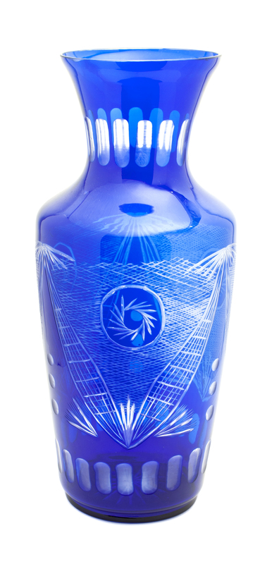 A Large Cut to Clear Cobalt Glass Vase