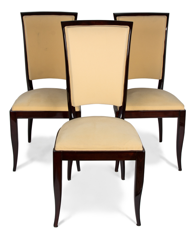 A Group of Six French Art Deco Lacquered Mahogany Dining Chairs