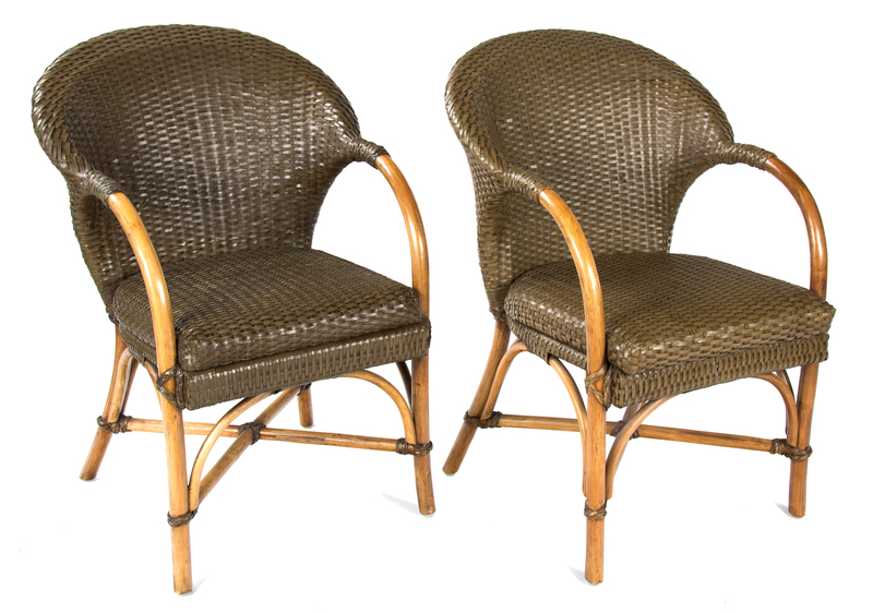 A Pair of Rattan Open Armchairs