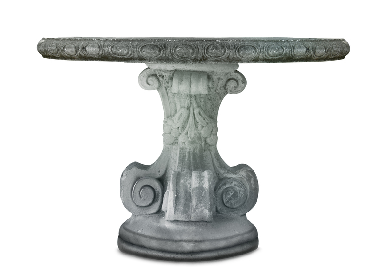 with circular top above strapwork supports on a stepped-circular base.