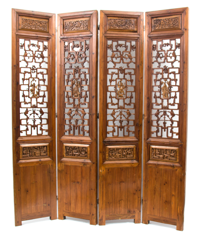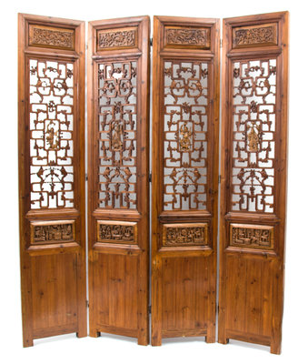 A Set of Four Chinese Pierced Carved Pine Panels