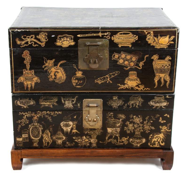 A Chinese Black and Gilt Lacquer Bride's Box