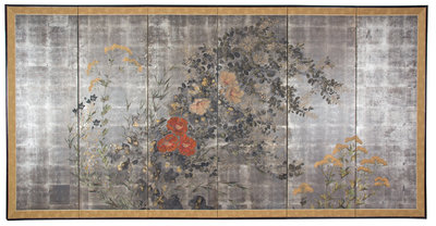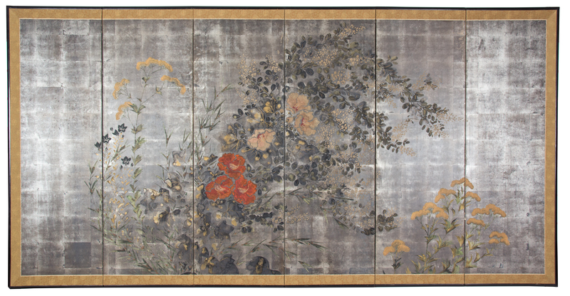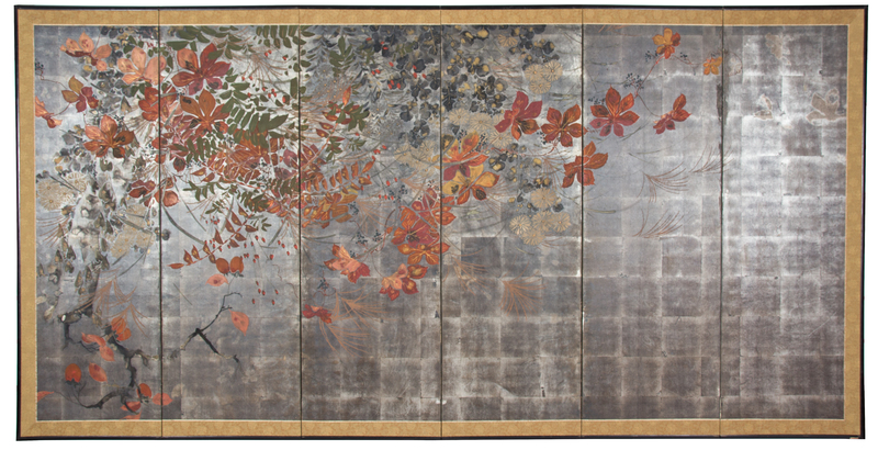 A Pair of Japanese Hand Painted Six-Panel Screens