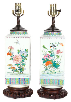 A Pair of Chinese Export Famille Verte Vases