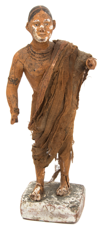 origin unknown, depicting a woman with arm and neck decoration, with a folded cotton cloth over one shoulder.