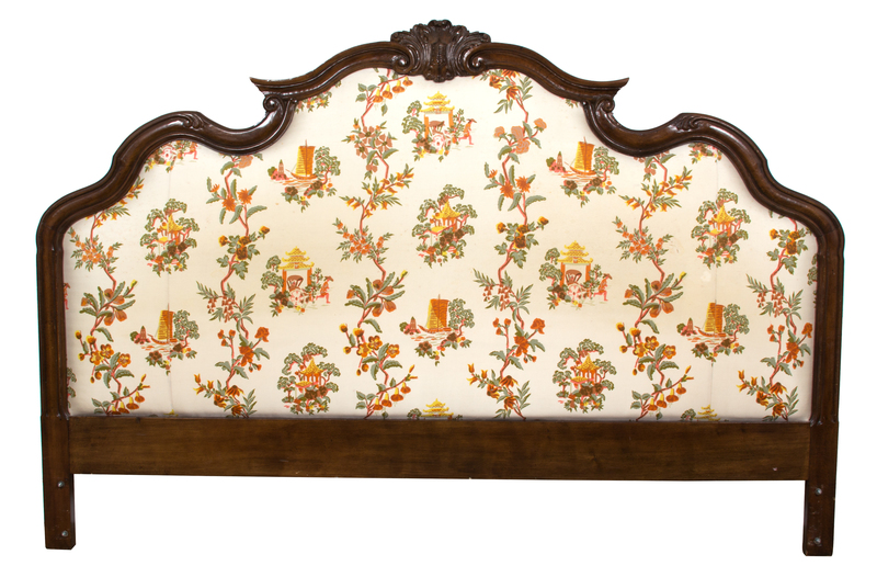 A Louis XV Style Carved Mahogany Upholstered Head Board