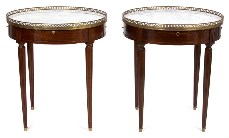 A Pair of Louis XVI Style Marble Top Gueridon Tables
