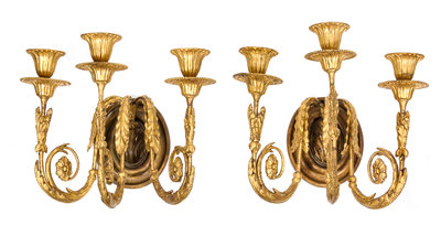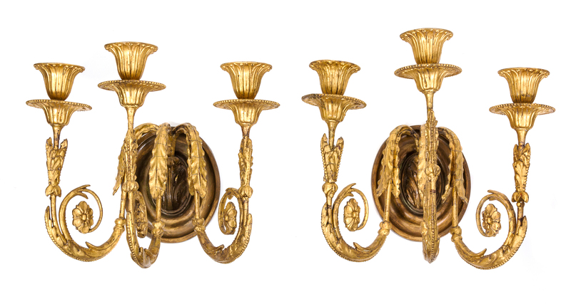 A Pair of Louis XVI Style Gilt Plaster Three-Light Wall Sconces