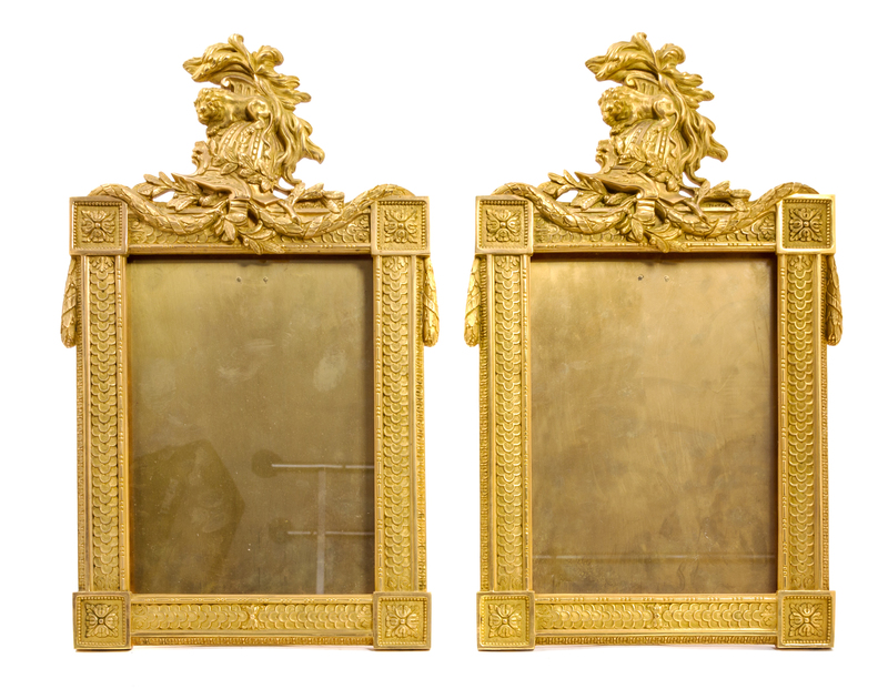 A Pair of French Empire Gilt Bronze Easel Back Frames