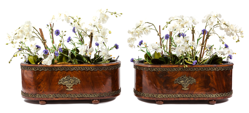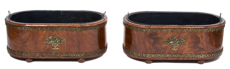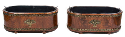 A Pair of French Empire Style Gilt Metal Mounted Mahogany Jardinieres
