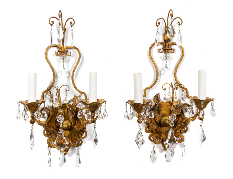 A Pair of Gilt Metal Two-Light Wall Sconces