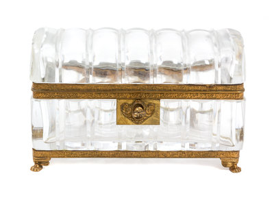 A French Gilt Bronze Mounted Molded Crystal Hinge Top Box