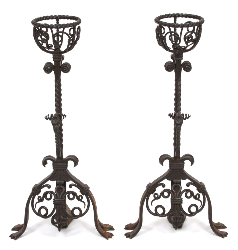 A Pair of Jacobean Style Wrought Iron Fire Dogs