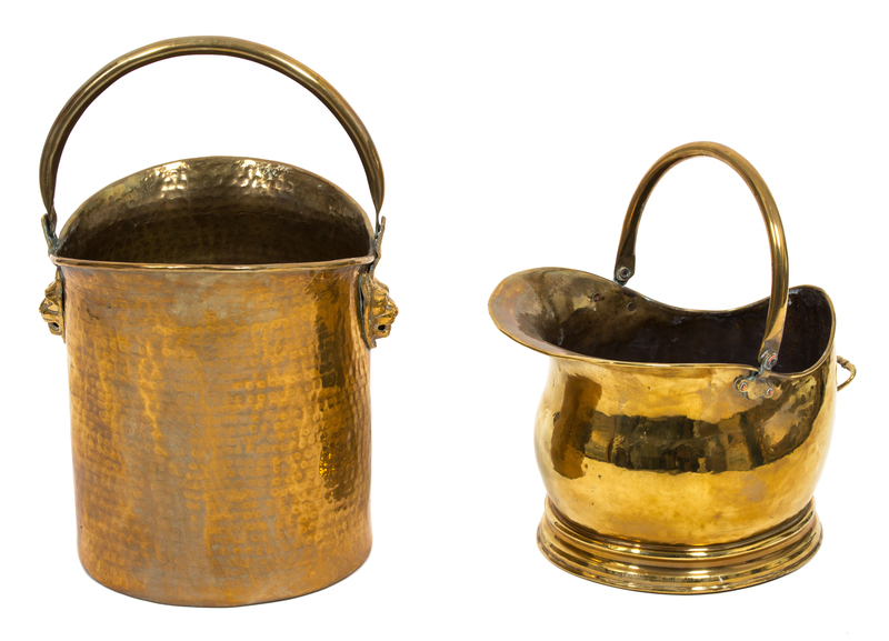 one with hand hammered surface and lift handle with lion head mounts, the other with swing lift handle.