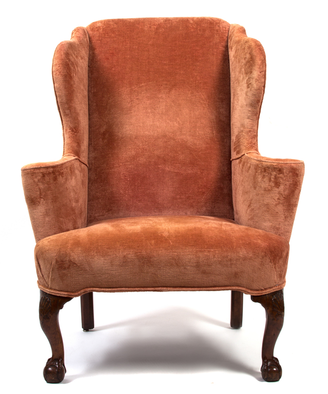 A George I Style Walnut Upholstered Wing Chair
