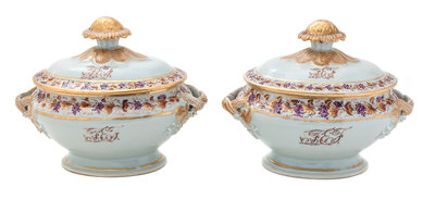 A Pair of English Lowestoft Porcelain Tureens