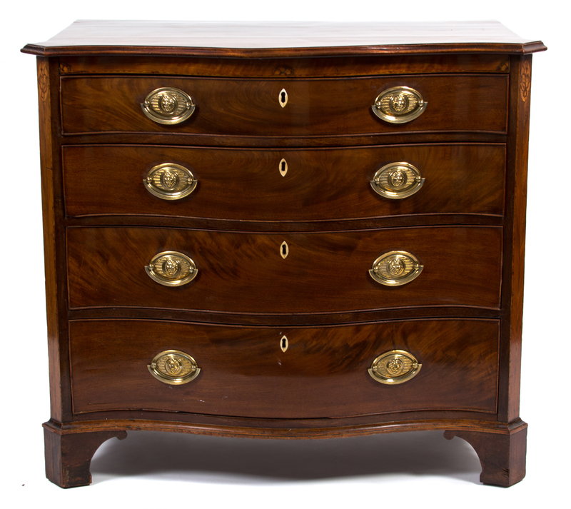 A George II Inlaid Mahogany Serpentine Chest of Drawers