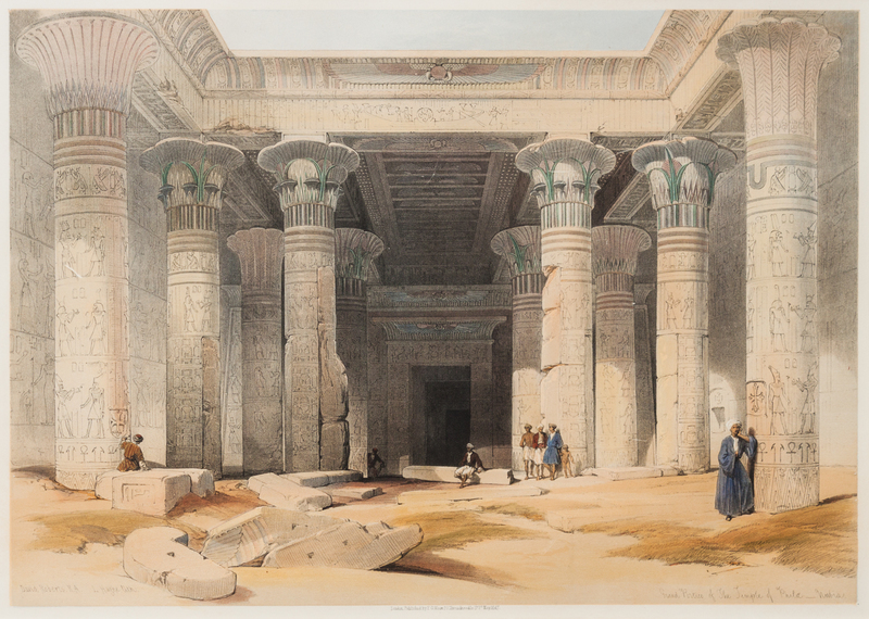 Views of Egypt published by FG Moon, comprisingView from Under the Portico of the Temple of Dendera, Grand Portico of the Temple of Phila-Nubia, and Colossus, Wady Saboua, Nubia (4 items total)