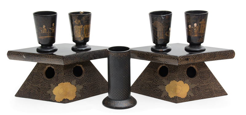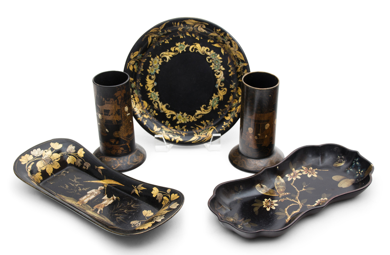 A Collection of Chinoiserie Decorated Papier Mache Articles