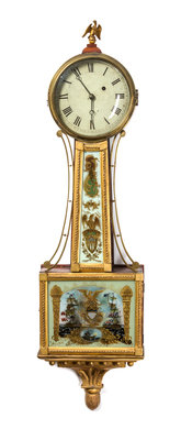 An American Federal Giltwood and Mahogany Cased Banjo Clock